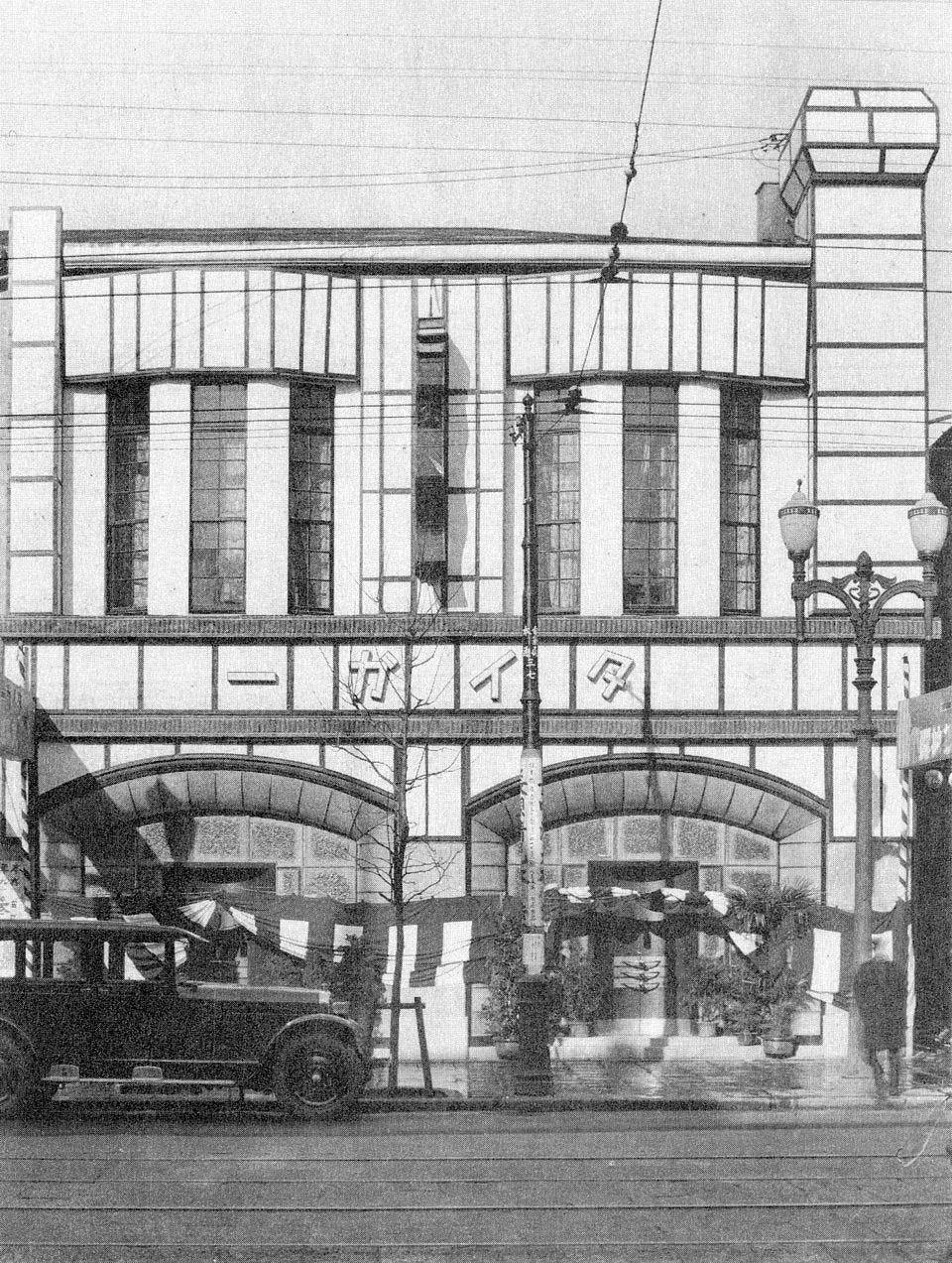 Finally, the song’s title is of course the old-fashioned 當世銀座節 on the record label...but written from right to left. Classical Japanese was written vertically, with columns read top to bottom and right to left. When written horizontally due to space constraints, like on a horizontal shop sign or above a temple gate, it was always read from right to left. Only later in the 20th century did the left-to-right horizontal direction become the standard. You can see the same right-to-left archaic business in the picture below on the big sign on the front of Café Tiger where it says Taigā タイガー (katakana ta-i-ga and a horizontal line to lengthen the last vowel). Delightfully olde timey!