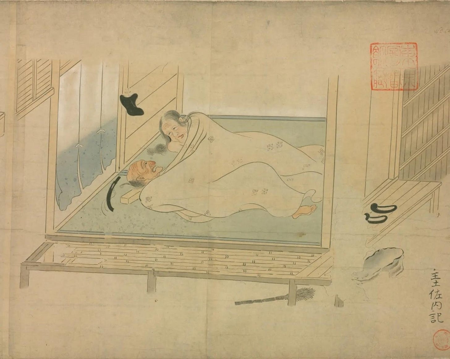 In Kyōto, there lives an old man named Takamuko no Hidetake and his wife. You can see from the sad condition of their house that their relationship to money is similar to the relationship between those who invest in crypto and success.